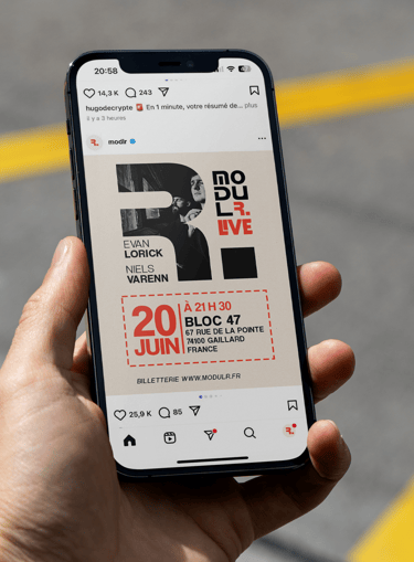 J’ai conçu une identité graphique complète, offrant une esthétique moderne et impactante qui transmet la personnalité du label et valorise son positionnement dès le premier regard.